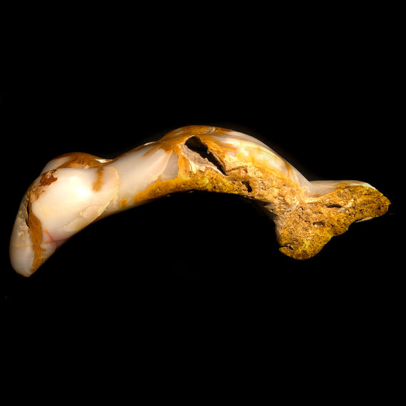 This is pose of a woman, on her back, arching yearningly. Onyx is notoriously un-predictable. As a result, carving it is an active conversation between the artist's desire and the stone's reality. In this particular case, although the stone fractured along a fault line during production, the vision survived. Since displaying it for the public, the piece has aroused strong personal stories of trial and survival, be it childbirth, assault, illness. Life is not easy; those who thrive have learned to survive it's challenges; what personal survival stories does she evoke in you?