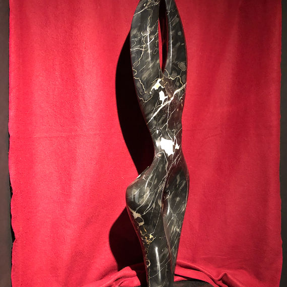 Tree Pose, like its Siamese twin "Lord of the Dance", is made of Portoro Marble, which is a fine variety of Italian marble from the charming Gulf of Poets, in the Ligurian province of La Spezia, about one hour's drive north of Carrara, Italy.